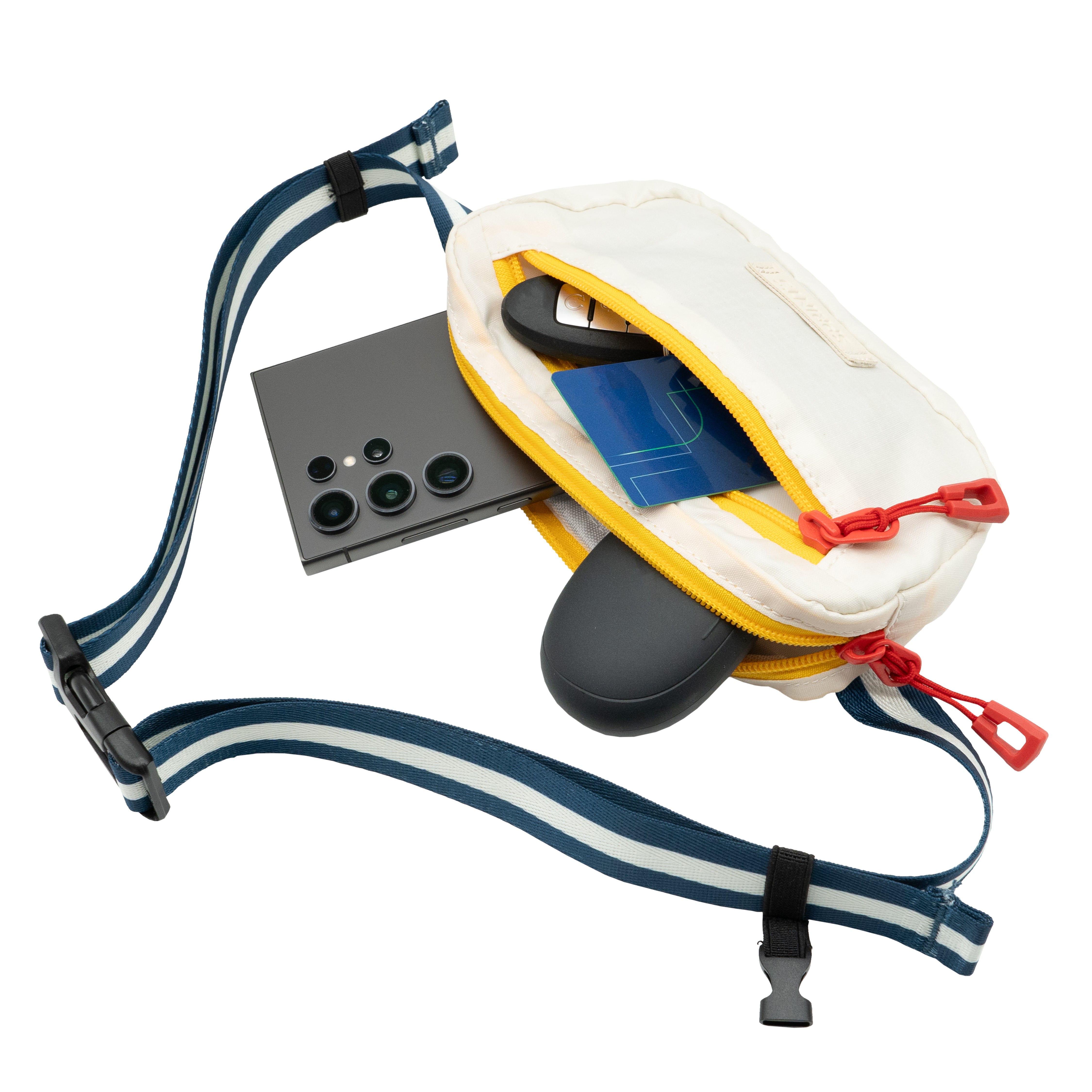 Sprints cross body Sling It bags are here to revolutionize your run. Designed to keep up with your every move, you can say goodbye to annoying bouncing bags and focus on what really matters - rocking your run. At 8” x 4.25” x 1.25” they are the perfect size to fit any iPhone, keys, workout gels, headphones, your wallet, chicken tenders, and more. Two zippered pockets for easy organizing, a removable second strap and a loop for hat storage, so your Sling It isn’t lonely.