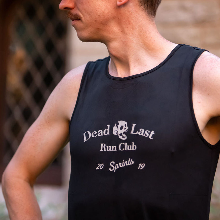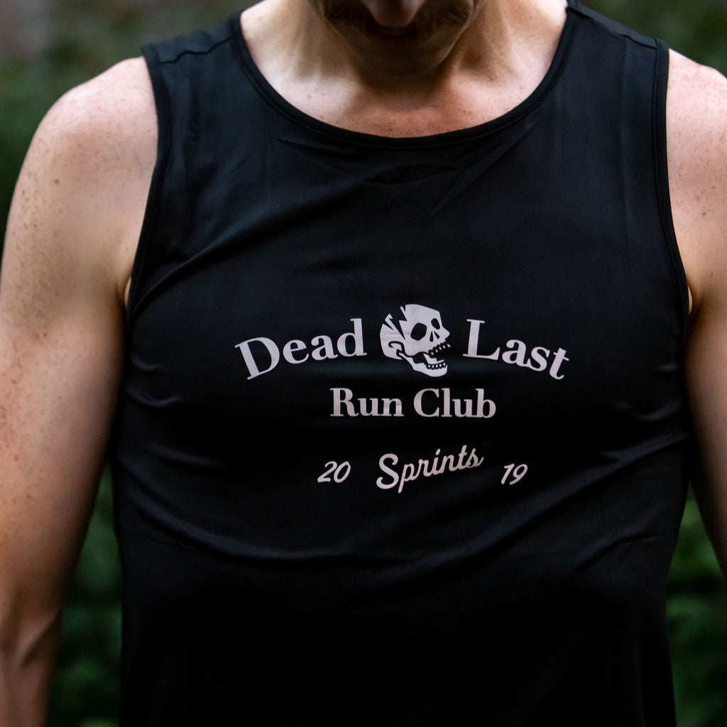 Finishing dead last is like getting cut off at the all-inclusive. You enjoyed a longer workout, spent more time taking in the amenities and likely met more people than anyone else, so who really won? Sprints Dead Last Run Club tankie is skull forward reminder that the club of the Dead Last is an elite crew for those who like to out-fun the rest.