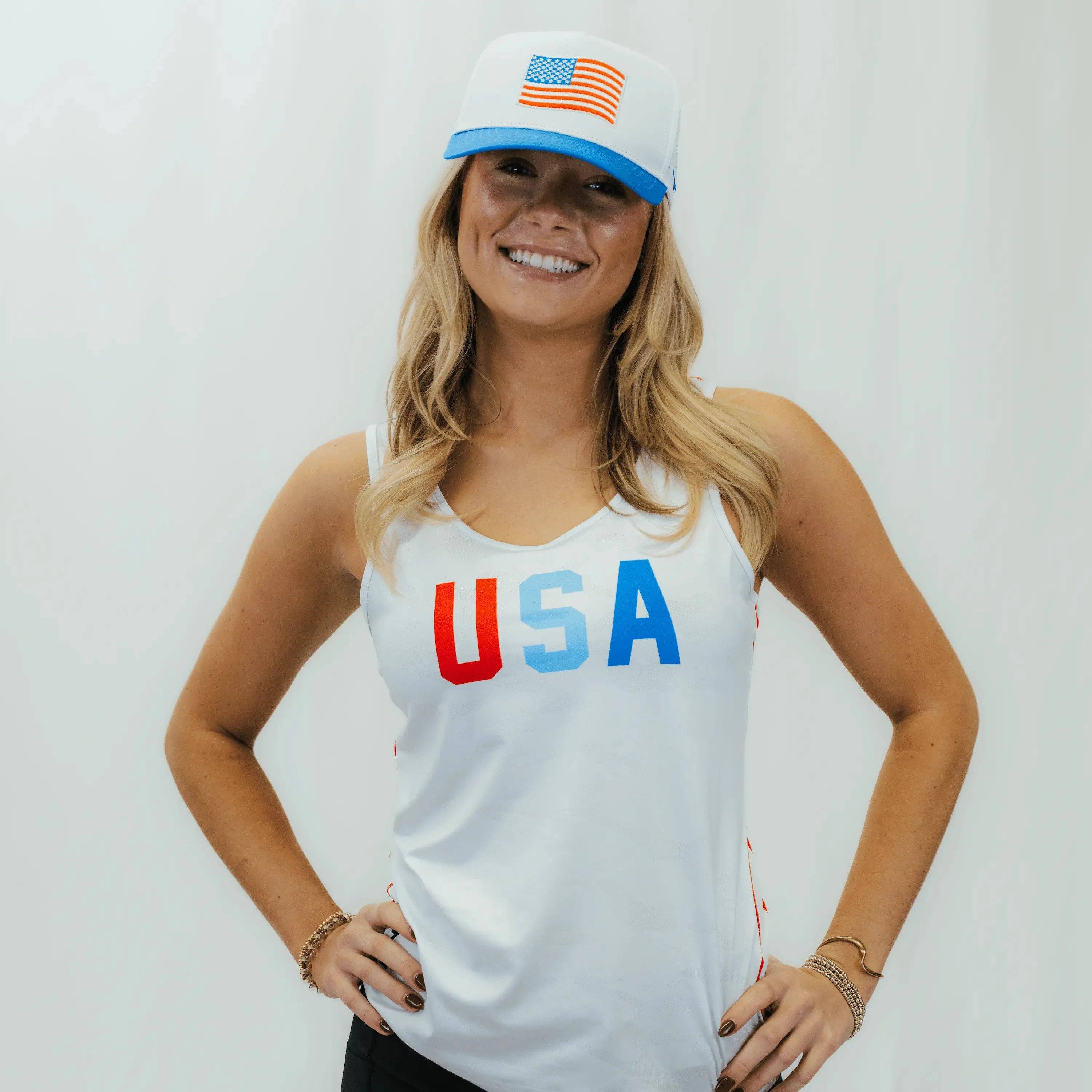 Women’s Core Zero USA Running Tank is engineered for performance with a patriotic punch. Featuring USA on the front and an American Flag printed on the back, this tank is built from our lightest weight knit fabric that’s unbelievably soft, stretches like a certified yoga instructor, and features a grid texture that pulls sweat off your body while staying breathable. The classic, full-length, streamlined cut with a racerback gives you a singlet designed to move with you and dry insanely quick—so you can rep the red, white, and blue from the first mile to the finish line.
