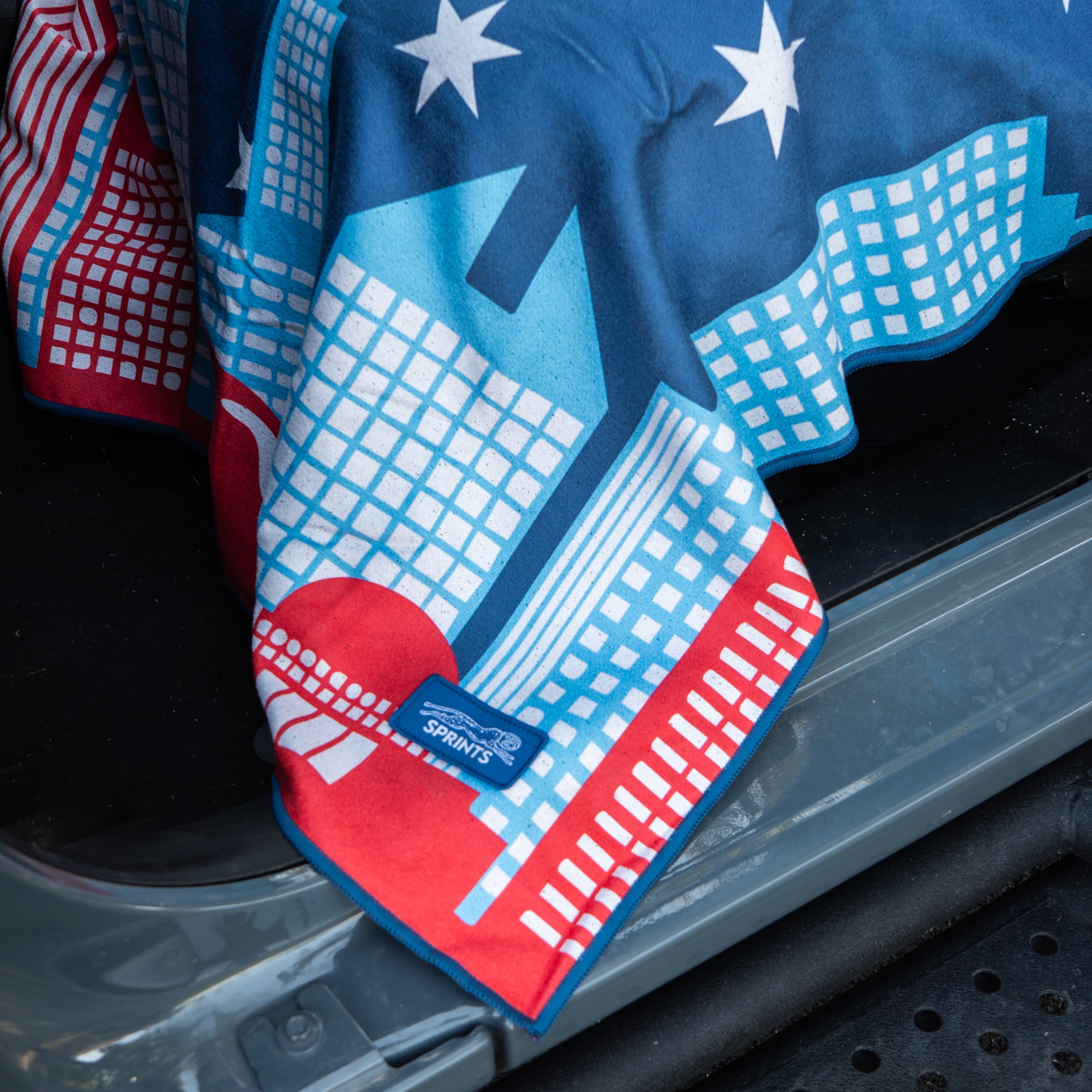 All Sprints Towels have a pocket on the back, to go over the headrest of your carseat.