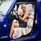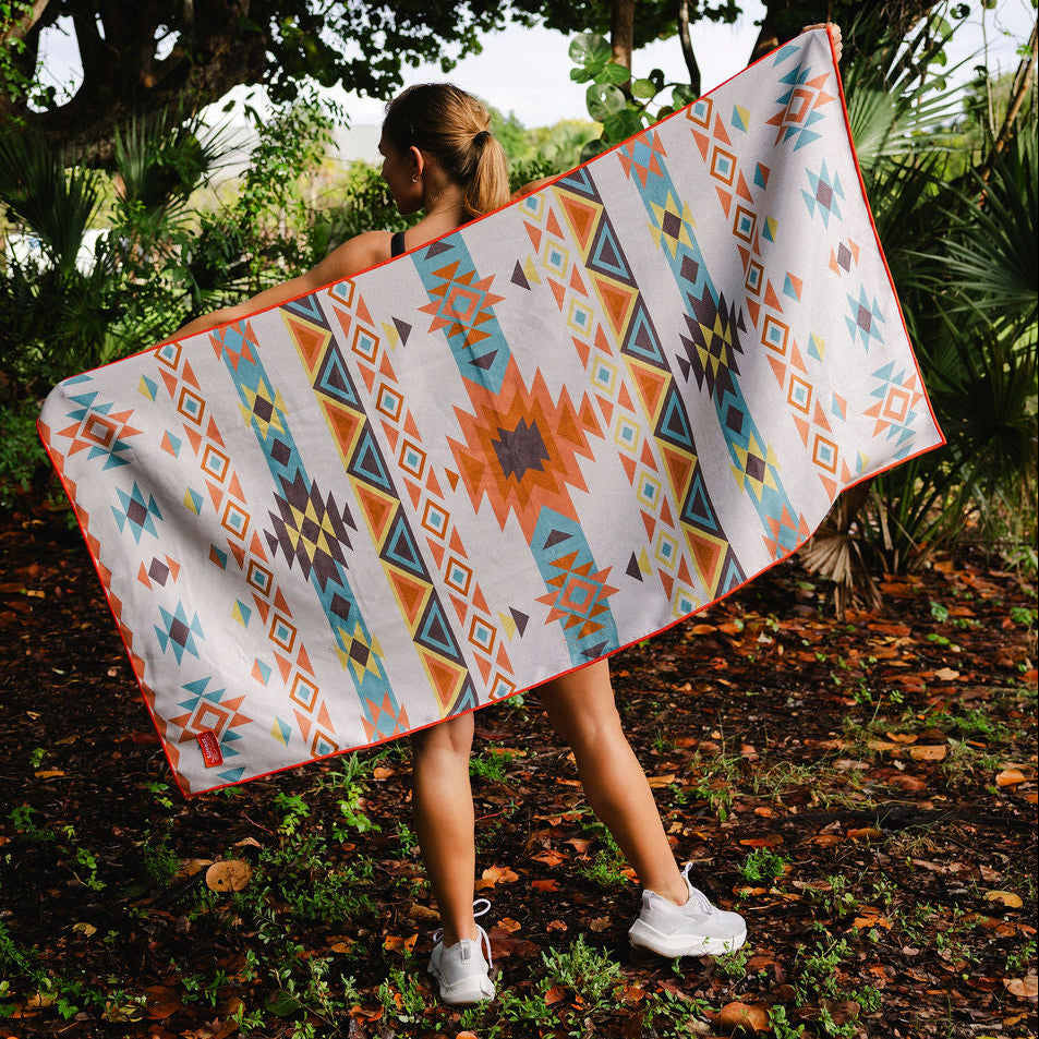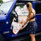 Cue the golden hour. The Adobe Echo Car Seat Cover Towel is inspired by desert sunsets—warm oranges and rich browns layered over a light, airy background that feels like chasing the horizon through Death Valley with the windows down and your favorite song on repeat.