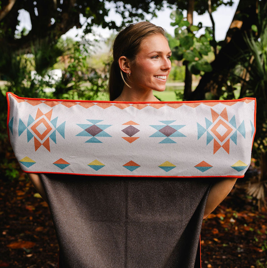 Built for life after sweaty activities, this towel features a smart pocket that slips easily over any car headrest (or your yoga mat) and a silicone-lined backing that grips your seat so it stays exactly where you want it. No sliding. No bunching. Just smooth cruising home after a sweaty run, hot yoga session, or dusty trail adventure.