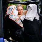 - Built in pocket to fit over all car seat headrests