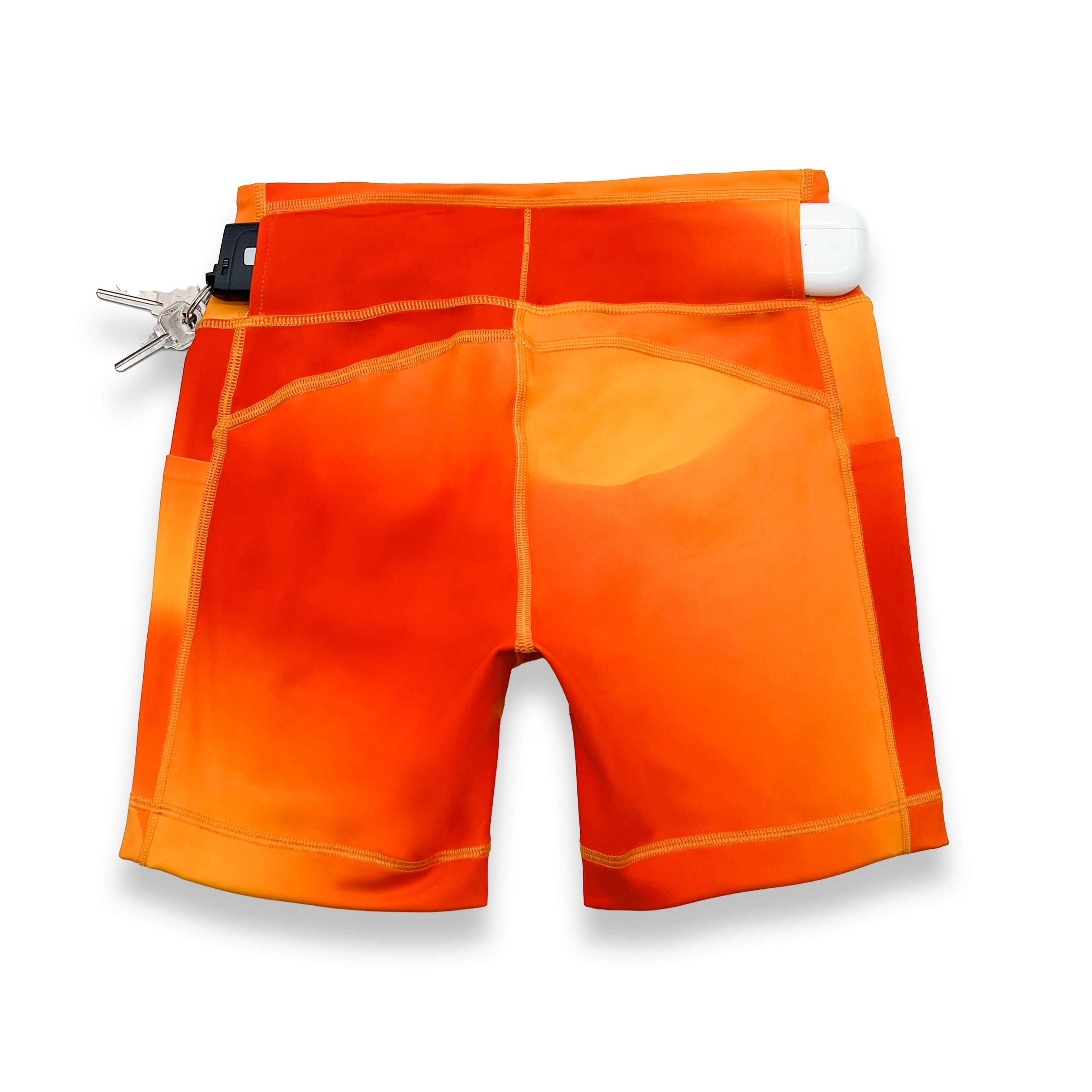 Four pocket system. Two phone-depth thigh pockets and two back pockets for snack storage, keys or wallet.