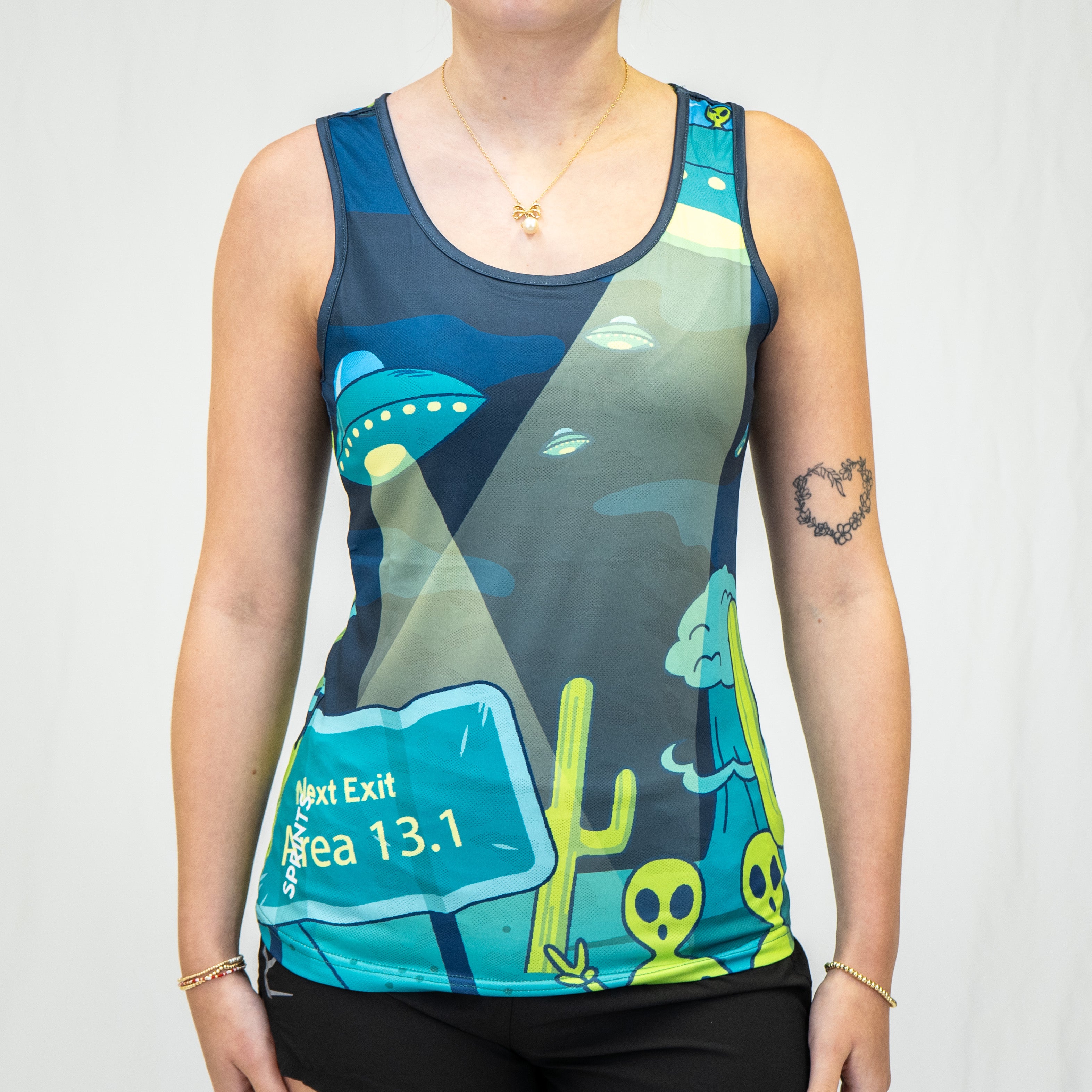 Womens Running Tank - Uninvited Alien Antics
