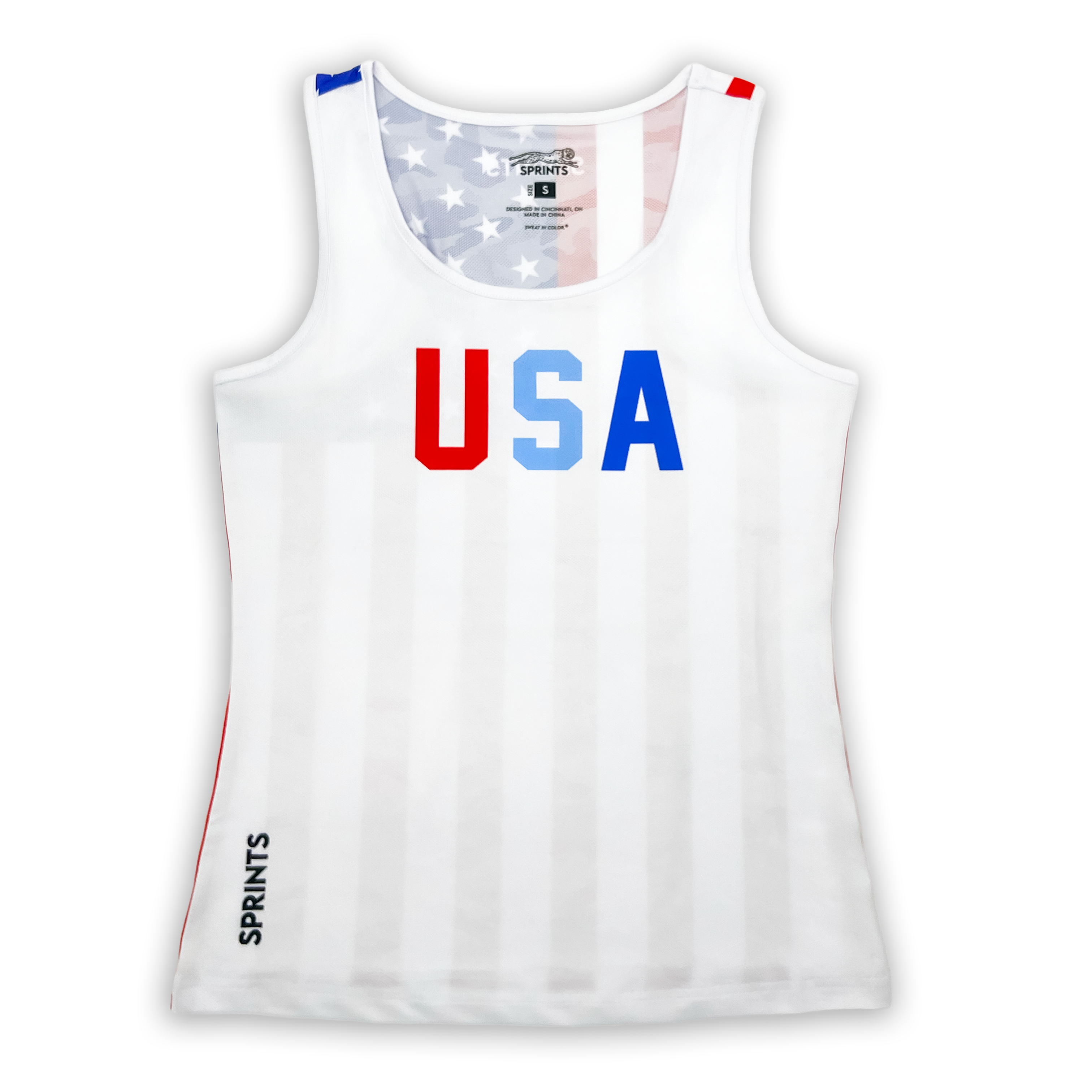 Women’s Core Zero USA Running Tank is engineered for performance with a patriotic punch. Featuring USA on the front and an American Flag printed on the back, this tank is built from our lightest weight knit fabric that’s unbelievably soft, stretches like a certified yoga instructor, and features a grid texture that pulls sweat off your body while staying breathable. The classic, full-length, streamlined cut with a racerback gives you a singlet designed to move with you and dry insanely quick—so you can rep the red, white, and blue from the first mile to the finish line.