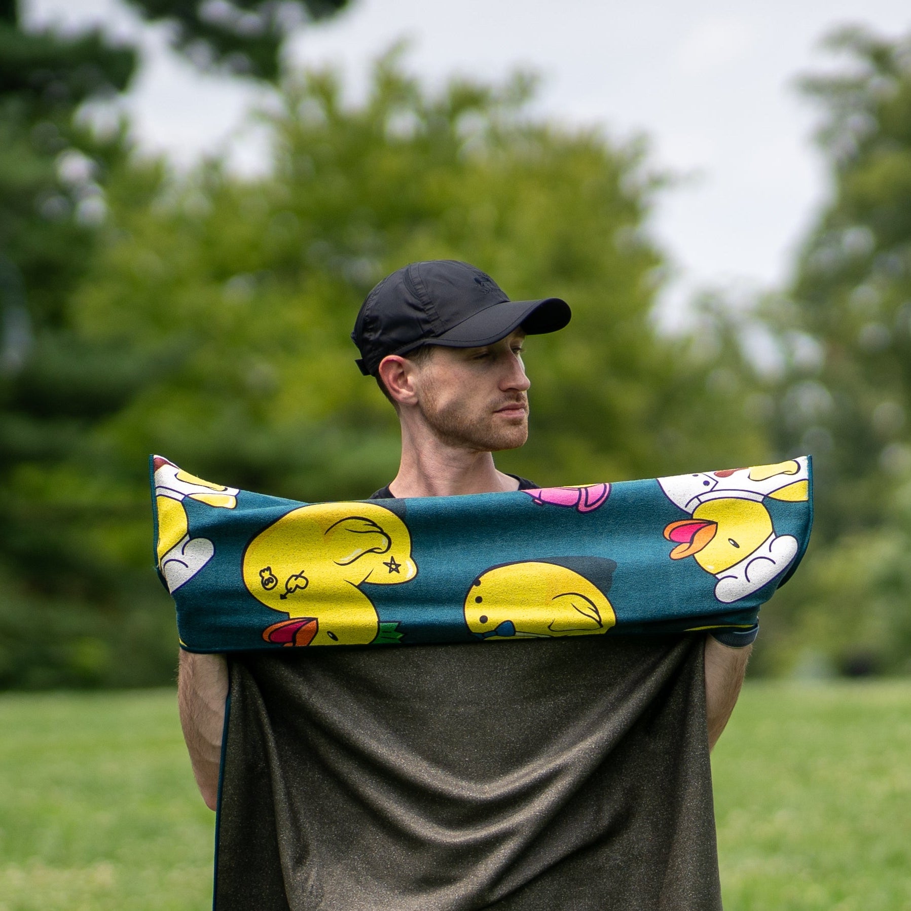 Duck duck goose, duck duck grey duck or Anka Anka Grå Anka (ask the Suedes) - ducks are cultural icons whether you like it or not. The Mighty Ducks, Ducktales, Darkwing Duck, Donald Duck, the Aflac duck, Duck Dynasty, Duck Hunt, The Oregon Ducks, Ducky from Land Before Time and the Sprints Get Ducked microfiber performance towels are all iconic. The iconic Get Ducked version of ducks ensures No Butt Sweat and No Sweat Stink. Features a pocket to fit over any car seat head rest or yoga mat.