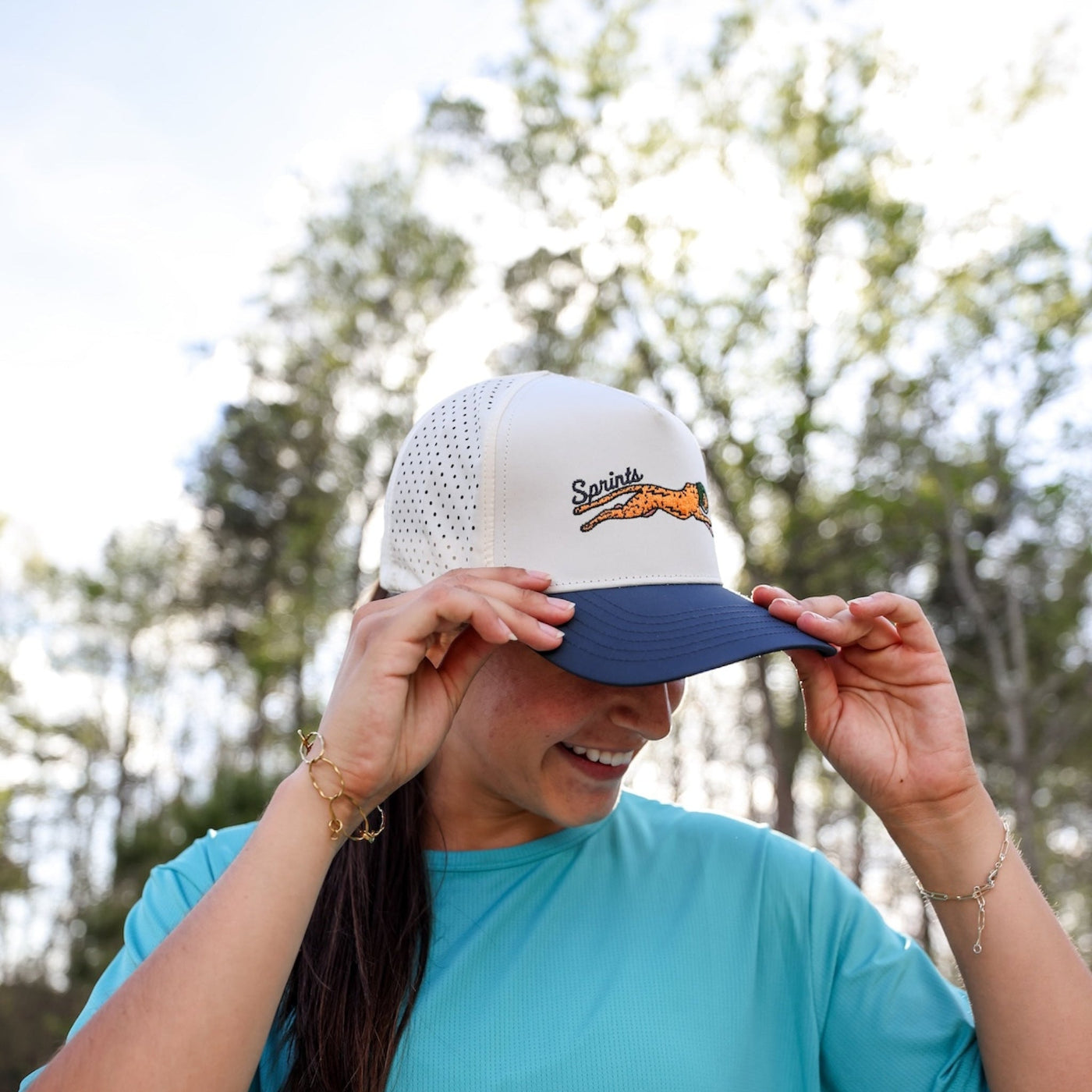 Miles the Jag is the Sprints legendary mascot and logo. Jaguars are sprinters and each are born with a unique repeating pattern coat. Sprint in style in this structured, laser cut vented, snap-back style athletic hat.